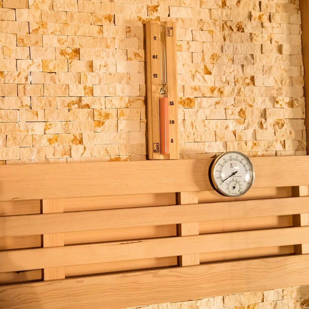 - टाइमिंग आवरग्लास: बोरोसिलिकेट ग्लास और प्राकृतिक फ्रॉस्टेड क्वार्ट्ज रेत से बना, सटीक समय 30 मिनट। रेट्रो टाइमिंग पद्धति सॉना अनुभव में अनुष्ठान की भावना जोड़ती है।