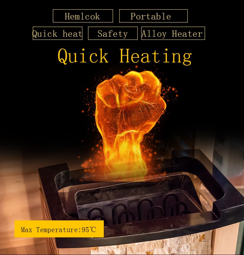 इसके अतिरिक्त, सॉना हीटर एक ओवरहीट सुरक्षा उपकरण से सुसज्जित है जो तापमान सुरक्षा सीमा से अधिक होने पर स्वचालित रूप से बंद हो जाता है, दोहरी गारंटी हीटिंग दक्षता और उपयोगकर्ता सुरक्षा है।