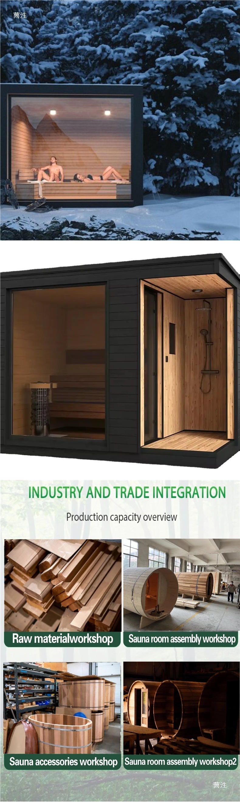 - उत्पादन प्रक्रिया: मानकीकृत उत्पादन में "कच्चा माल प्रसंस्करण - मुख्य घटक असेंबली - तैयार उत्पाद निरीक्षण" शामिल है। सॉना स्टोव का हीटिंग प्रदर्शन, शॉवर सिस्टम की वॉटरप्रूफिंग और बाहरी आवरण की जंग-रोधी कोटिंग जैसे विवरण स्थिर और विश्वसनीय बाहरी उपयोग सुनिश्चित करने के लिए कई परीक्षणों से गुजरते हैं।